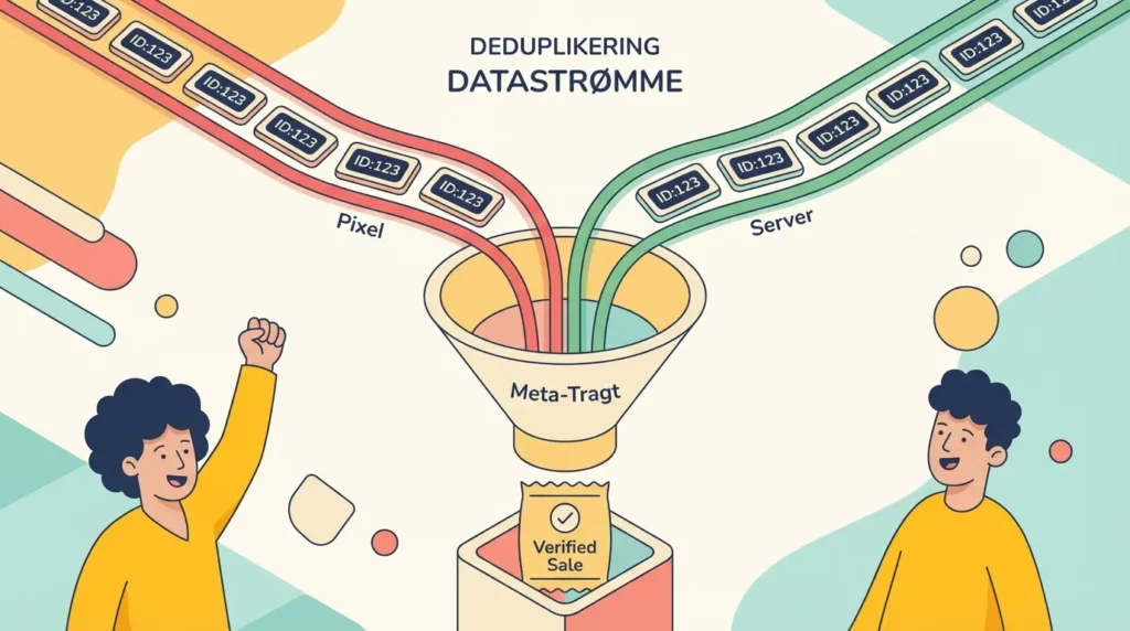 Dette er den største bekymring ved et hybrid-setup. Hvis en kunde køber for 500 kr., og både din Pixel og din Server sender beskeden “Nyt køb!” til Facebook, tror systemet så, at du har solgt for 1.000 kr.?